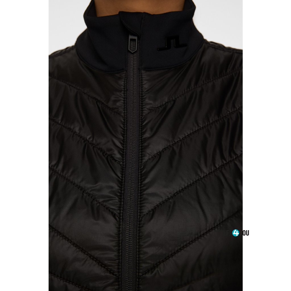 Madde Quilt Vest je navržena pro golfistky, které potřebují teplo a volnost pohybu zároveň. Izolační prošívané panely udrží trup v teple, zatímco strečové boční části umožňují pohodlný švih. Černý minimalistický design doplněný logem JL podtrhuje moderní sportovní vzhled.