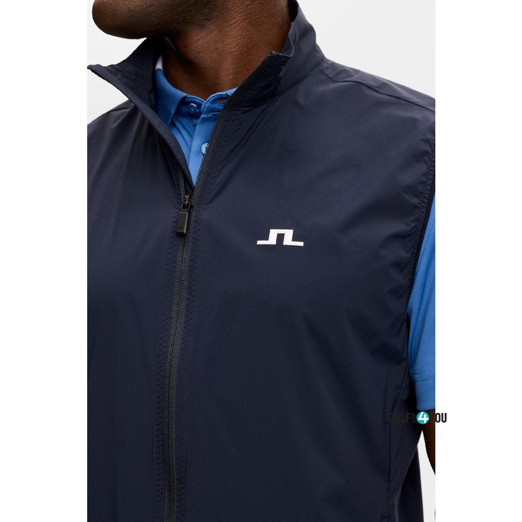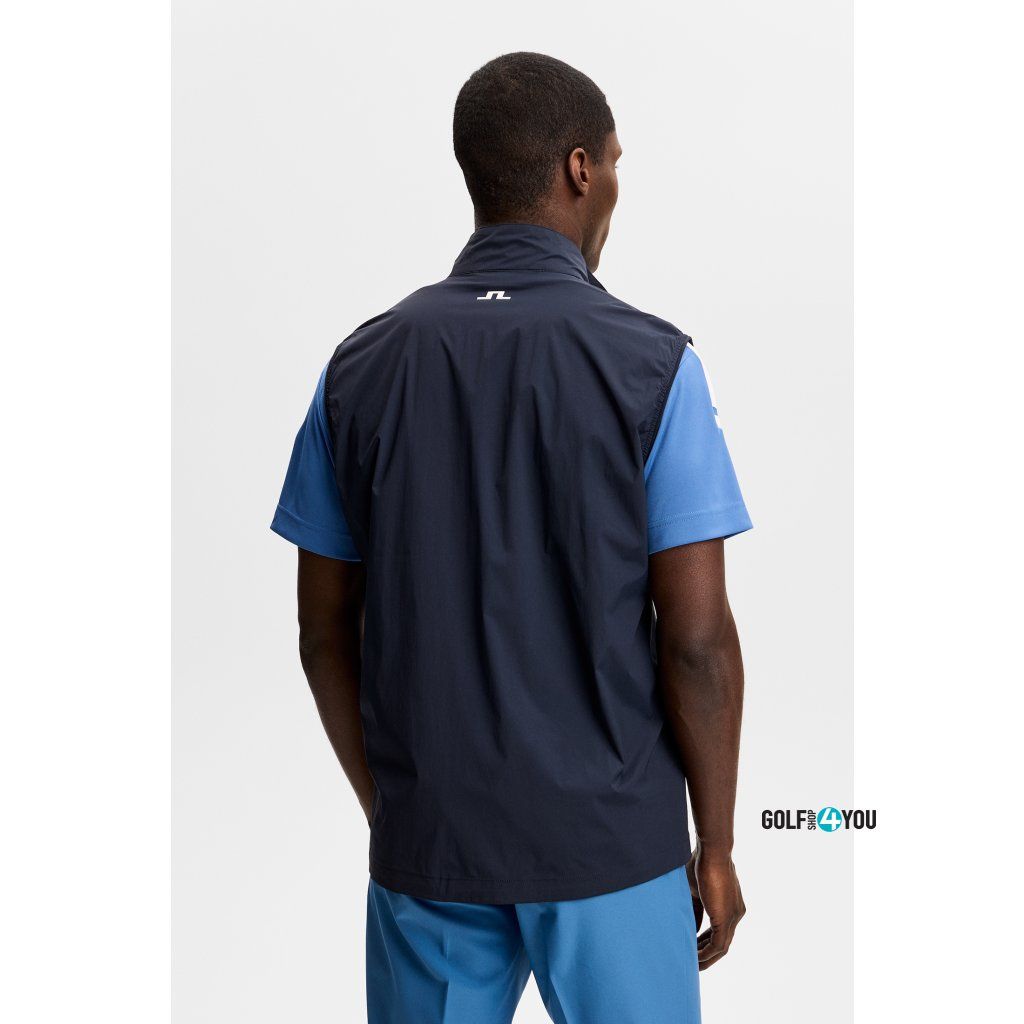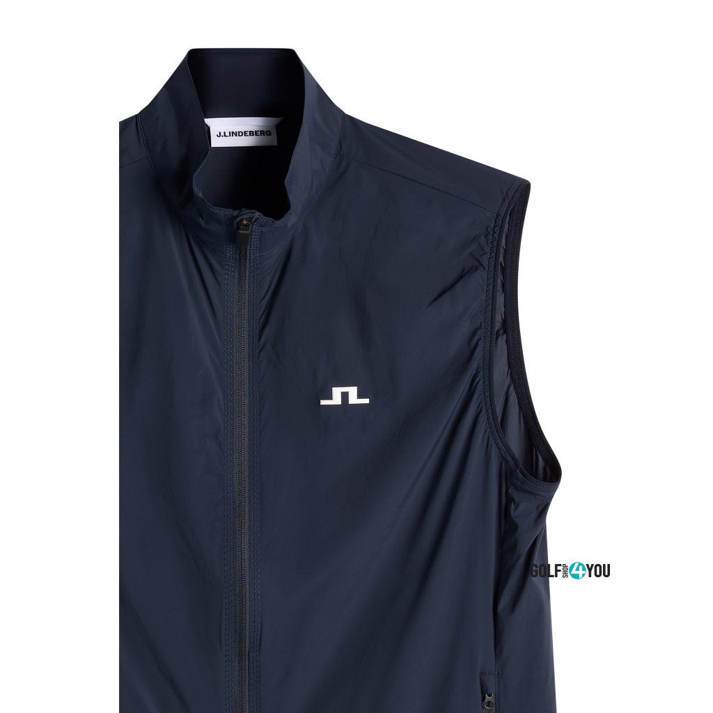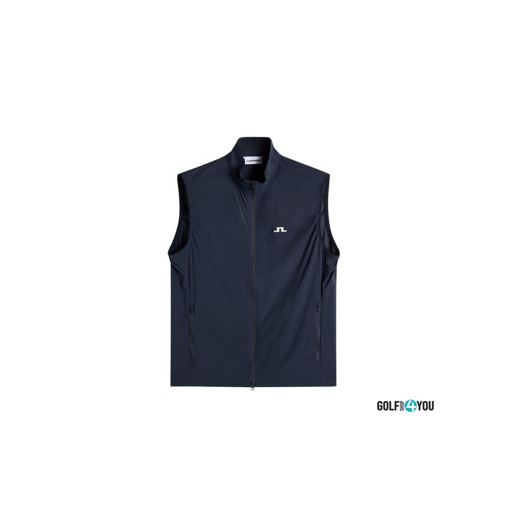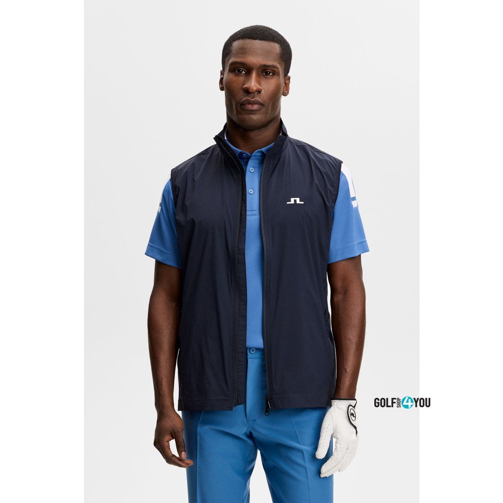 J.Lindeberg Pánská Golfová Vesta Ash Light je lehká, technická golfová vesta navržená pro hráče, kteří chtějí volnost pohybu, ochranu před větrem a komfort při proměnlivém počasí. Díky vodoodpudivému a větruodolnému materiálu je ideální jako praktická vrstva na hřiště, do bagu i na běžné nošení. Vesta je vyrobena z pružného materiálu, který neomezuje při švihu. Dvoucestný zip uprostřed předního dílu usnadňuje regulaci pohodlí během hry, zatímco kapsy na zip bezpečně uloží drobnosti. Praktickým benefitem je také sbalitelné provedení – vesta se dá snadno uložit a vzít s sebou, když se počasí na hřišti rychle změní.