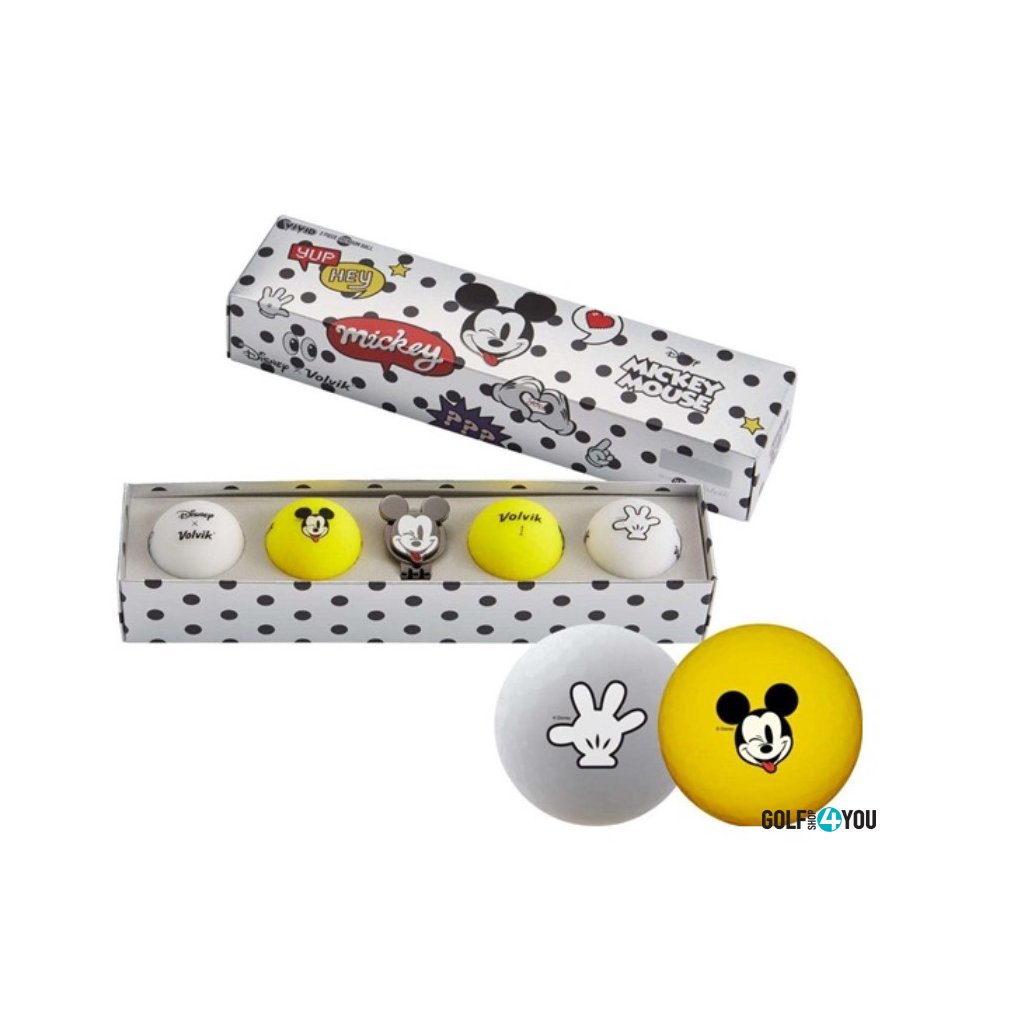 Volvik Mickey Mouse Komiks Golfové míčky + markovátko, 4 ks představují limitovanou edici prémiových míčků Volvik VIVID s originálním komiksovým designem Mickey Mouse. Set kombinuje špičkovou technologii Volvik s hravým vzhledem a praktickým kovovým markovátkem s magnetickým klipem.
